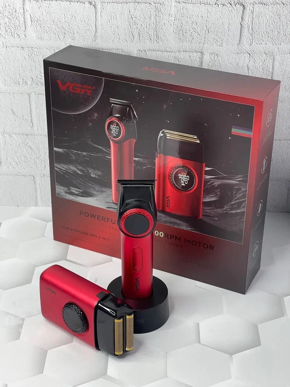 ماشین اصلاح خطزن مدل V-977 و شیور حرفهای مدل V-377. این ترکیب، مجموعهای کامل برای انجام صفرزنی، خطزنی و اصلاح تمیز و نزدیک به پوست را در اختیار شما قرار میدهد. قدرت موتور بالا و طراحی مناسب باعث شده این ست هم برای مصرف شخصی و هم استفاده در آرایشگاه انتخابی مطمئن باشد.